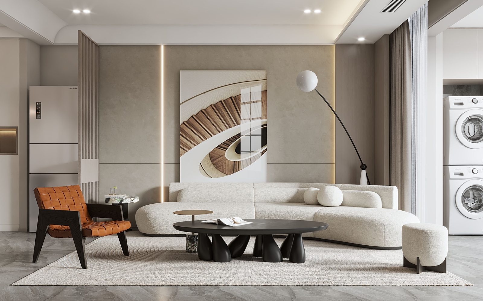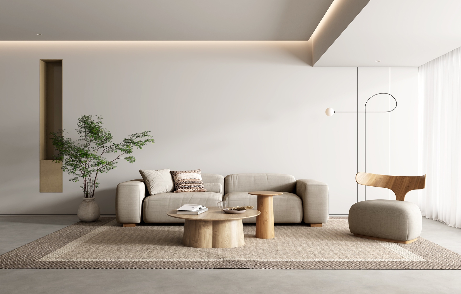 Thông thường, các gam màu như trắng, xám, kem hoặc đen được chọn làm màu nền. Điều này giúp không gian trở nên rộng rãi và dễ dàng làm nổi bật các món đồ trang trí như tranh ảnh hay gối tựa sofa.